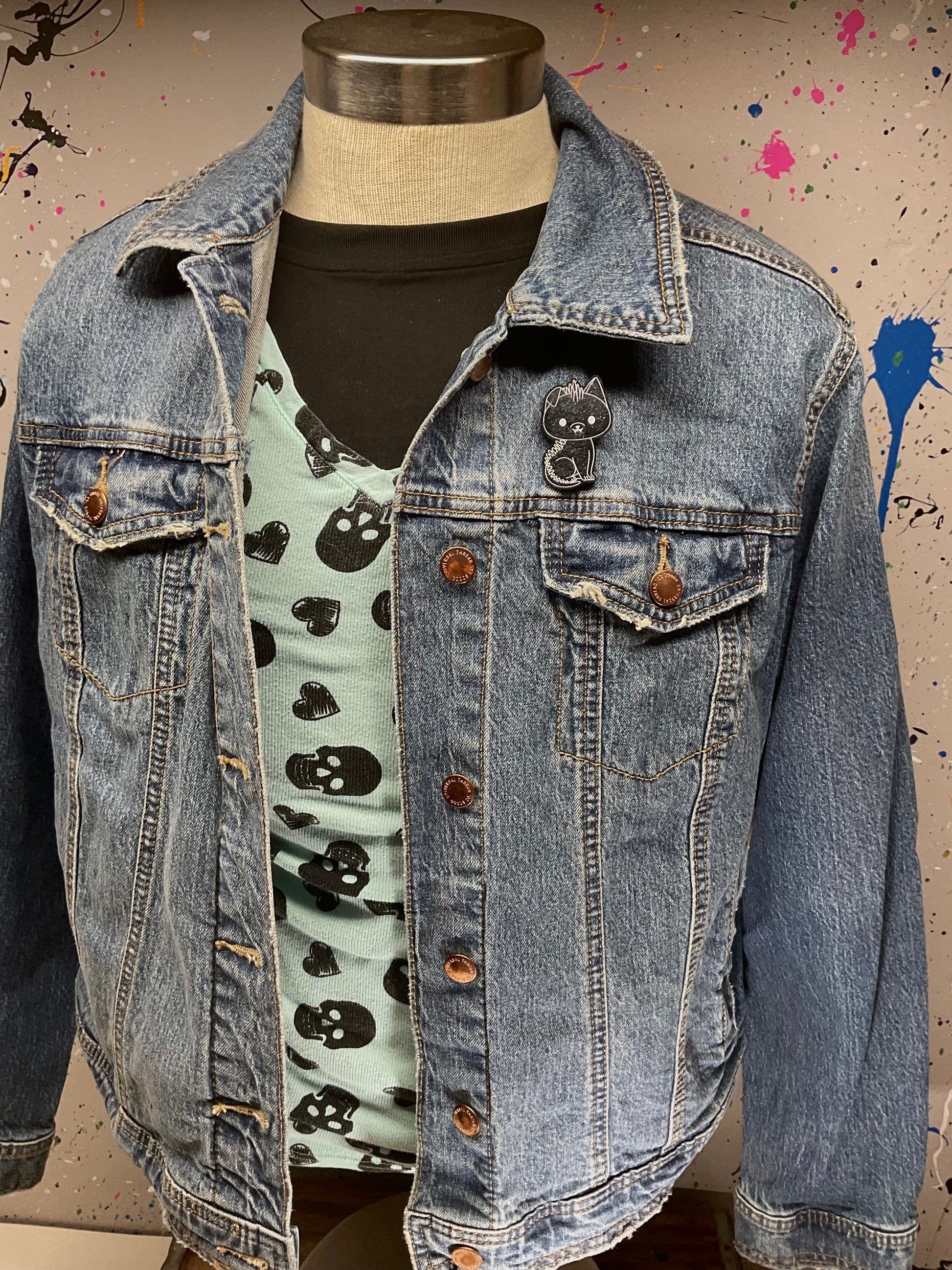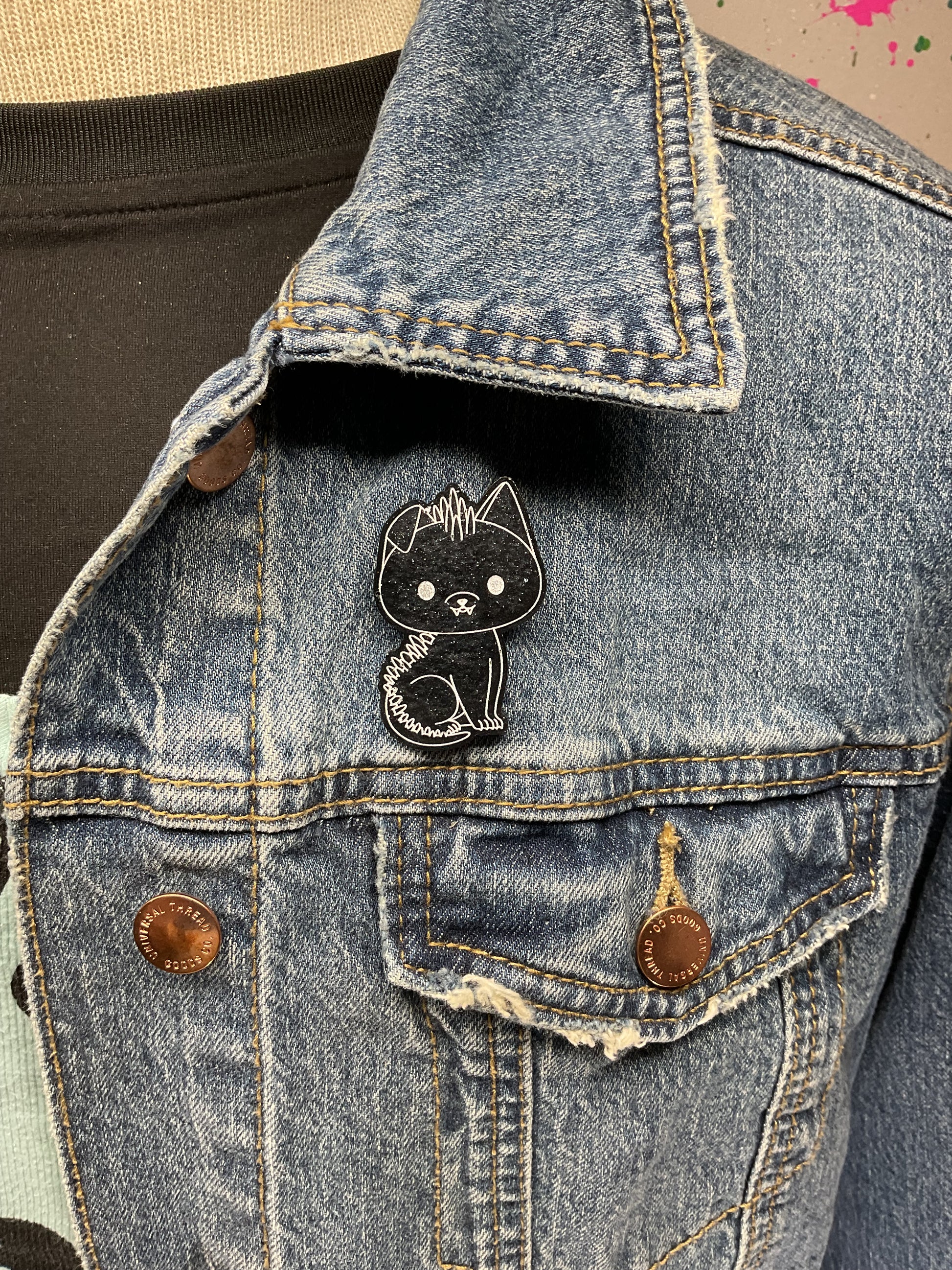 Meet your new rebellious sidekick: the Chupacabra Resin Pin. This handcrafted black pin captures the mythical creature with a mohawk and sharp little fangs, ready to inject a shot of edgy charm into your denim, backpacks, or wherever you dare to pin it. Are you bold enough to wear the legend?