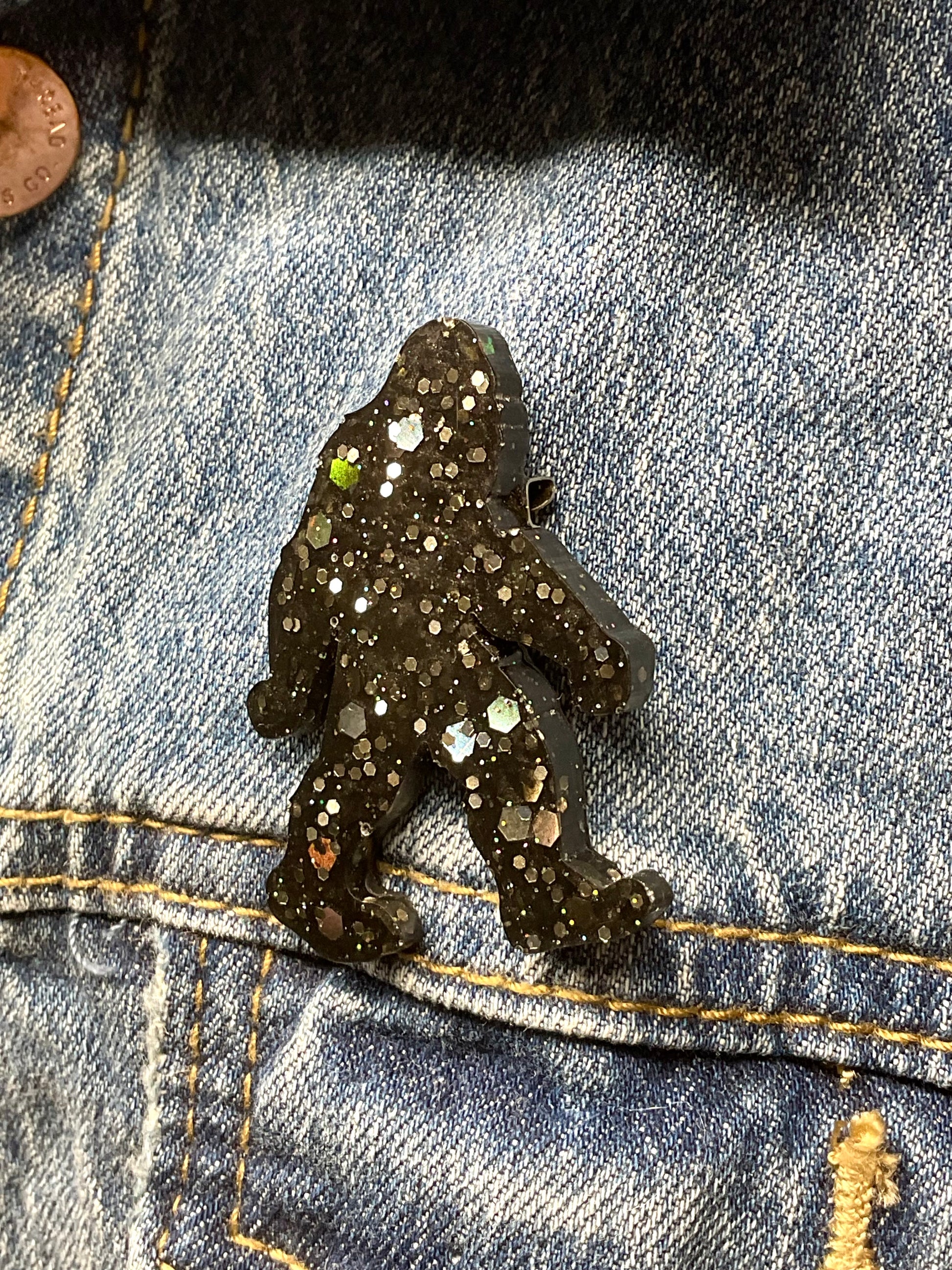 Black Glittery Bigfoot Pin