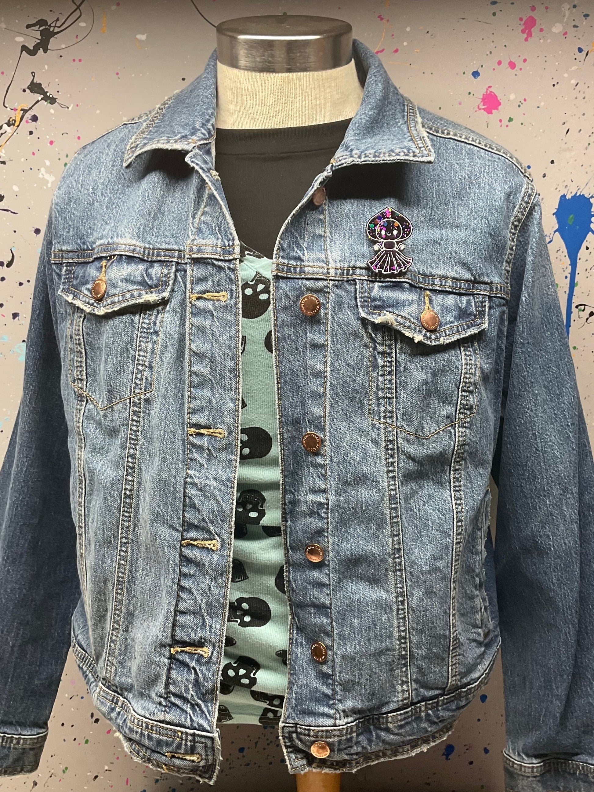 Meet the Black with Pink Glitter Pin, the boldest way to sprinkle your style with cosmic charm. This enchanting pin features a cute Flatwoods Monster bursting with vibrant, multicolored glitter that shines like a pink galaxy on your jacket, bag, or hat. This little cosmic wonder is your ticket to turning heads and sparking conversations.