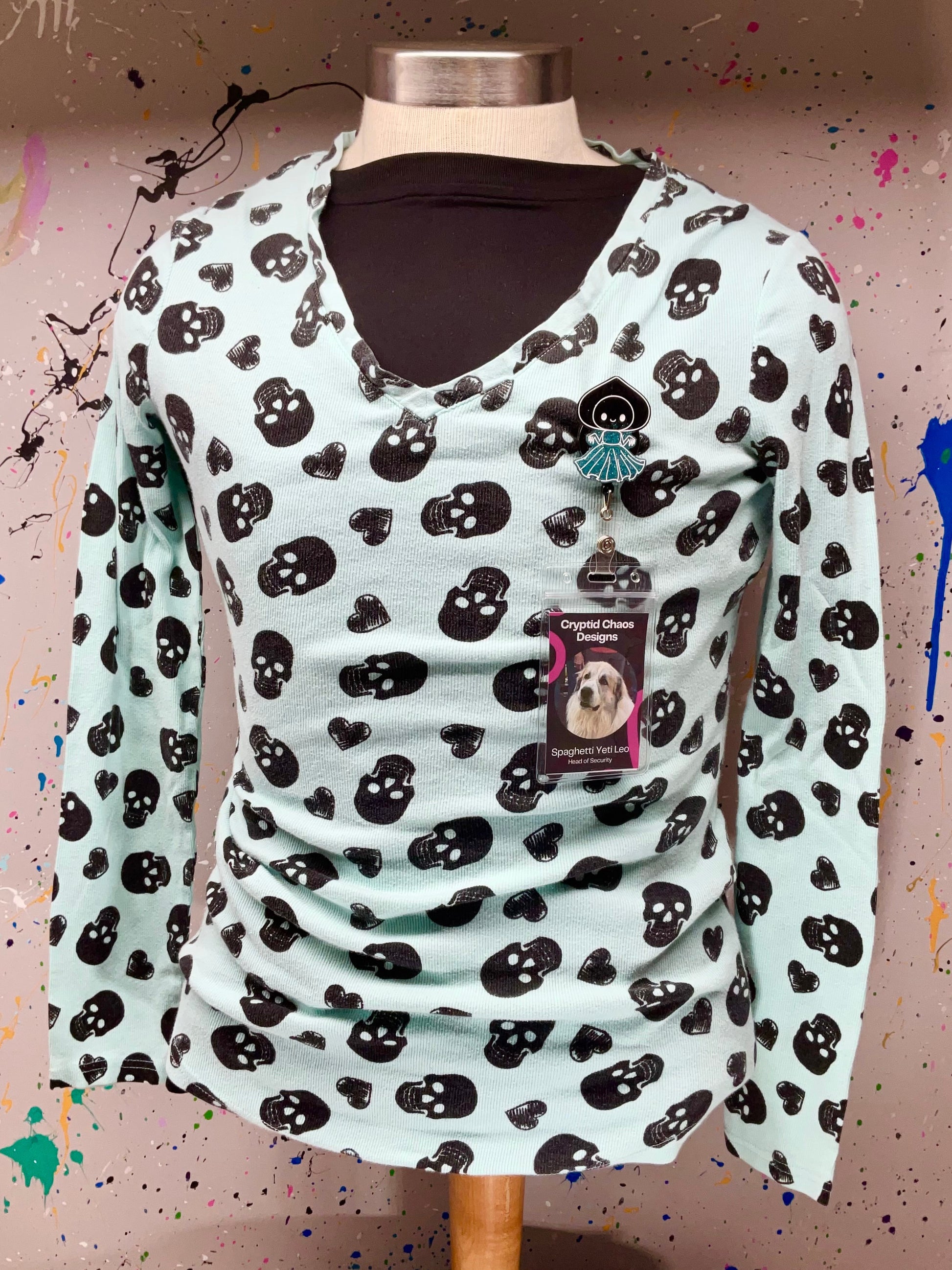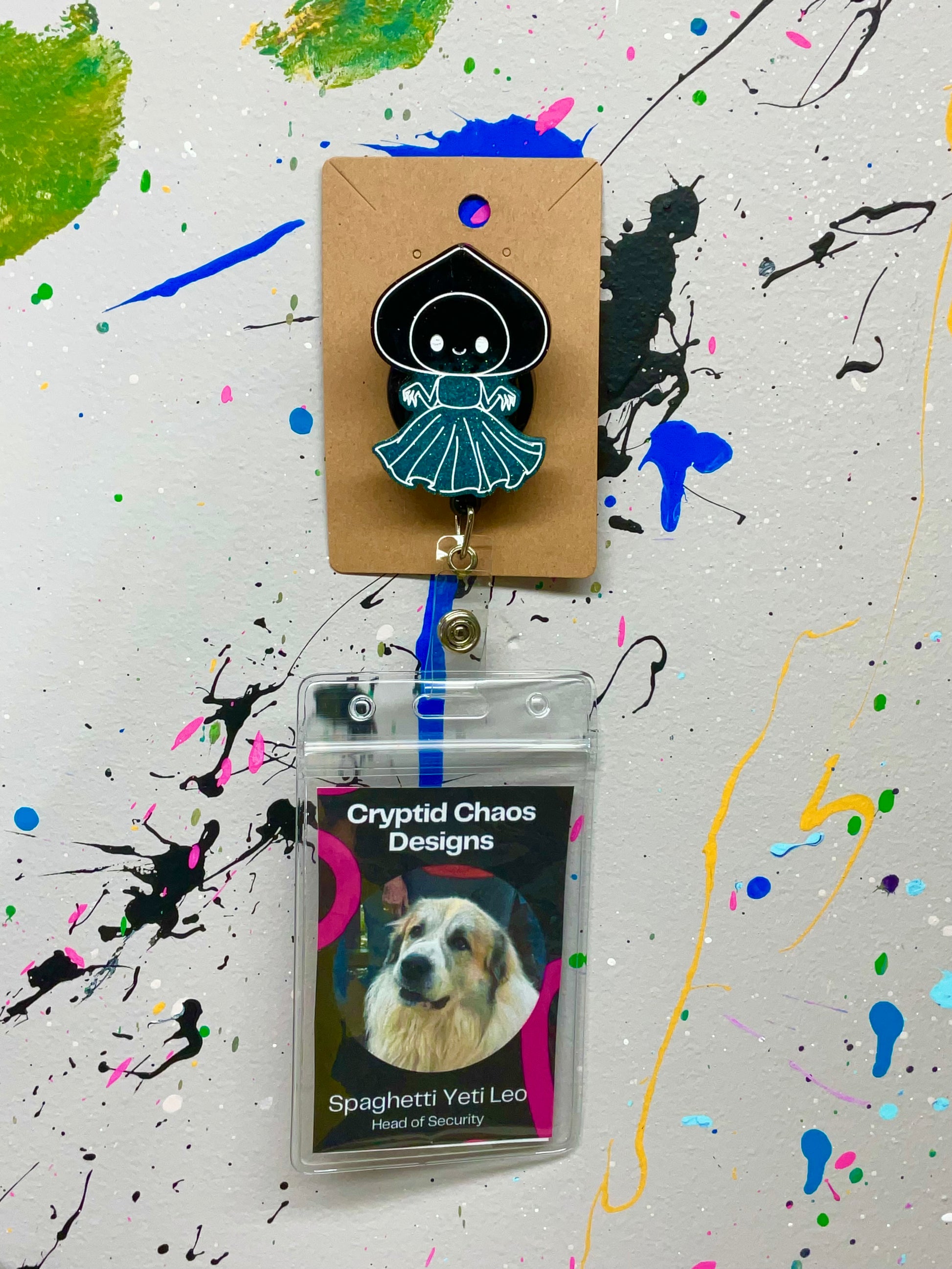 Ready to slap some extraterrestrial glitter on your workday? This Flatwoods Monster badge reel is a wicked little cryptid with a black glittery hood and a swirling teal dress that screams "I’m here to explode your workday!" It’s not just a badge reel, it’s your new spooky sidekick, ready to drag your ID through the darkest, most fabulous corners of your office chaos.