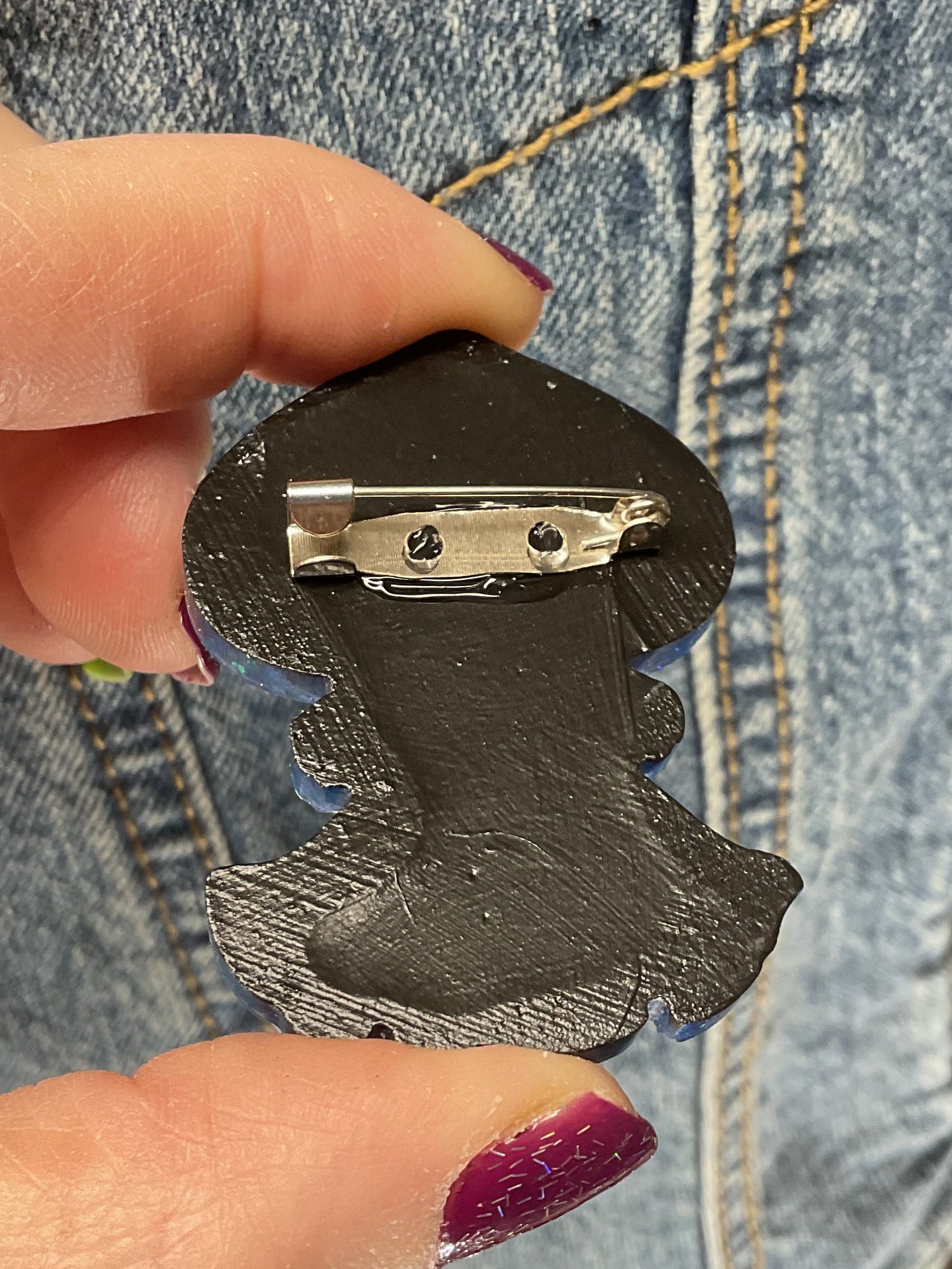 Blue Glitter Flatwoods Monster Pin