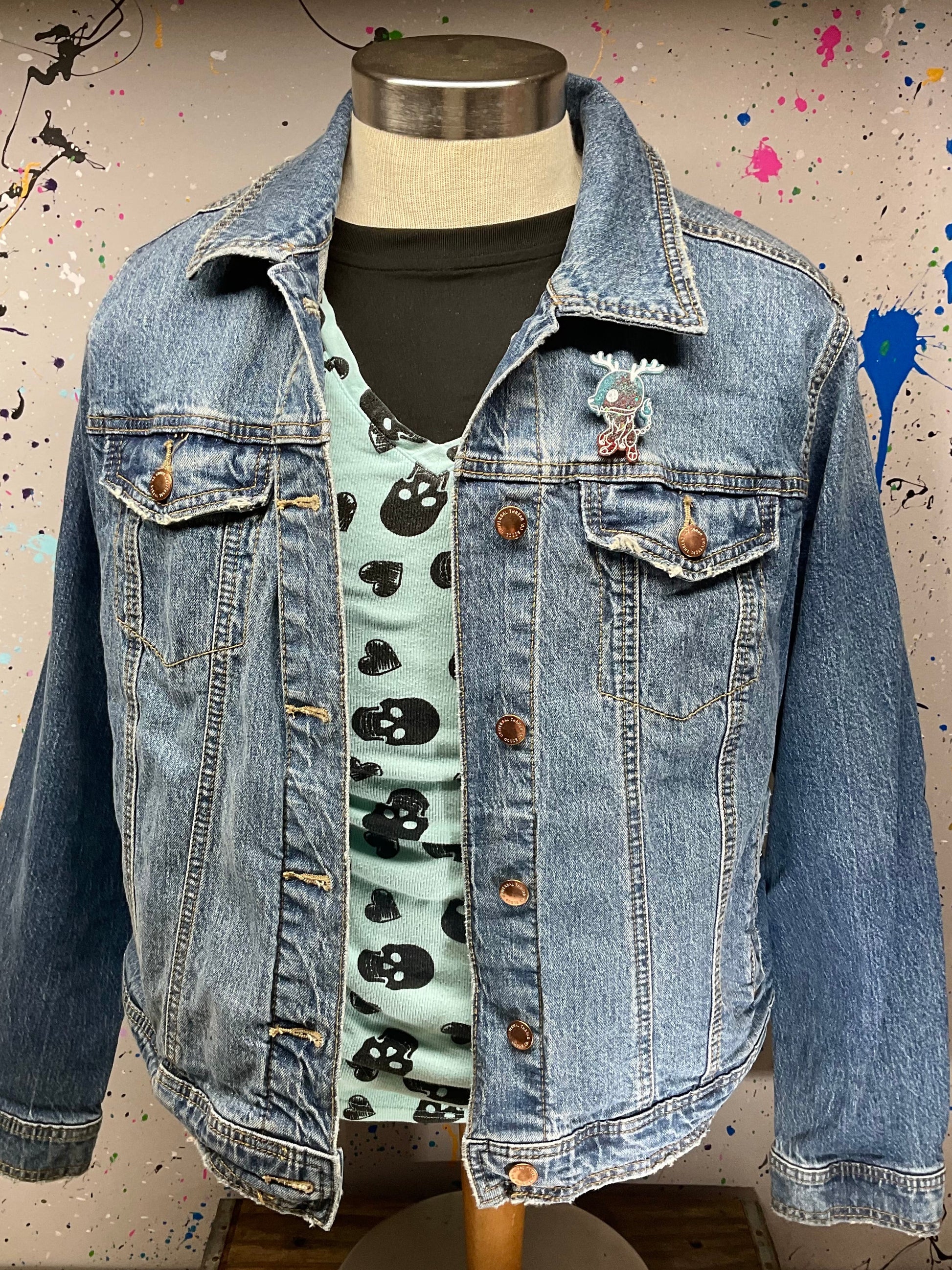 Unleash some serious style with this glittery Wendigo resin pin in striking blue and red shades. This pin isn’t just a cute accessory, it’s a bold statement piece that demands attention wherever you wear it.