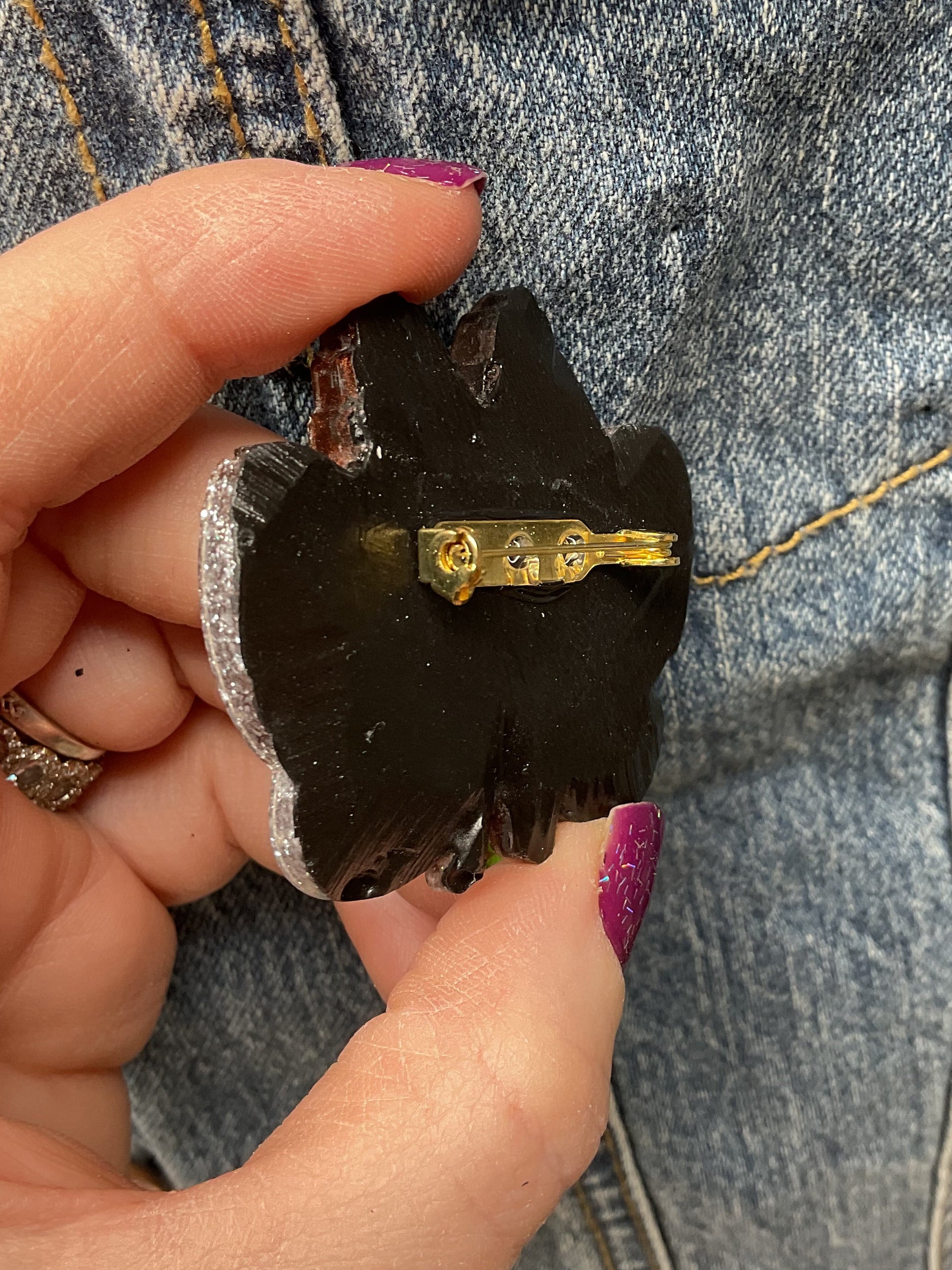 Stand out with this Brown Glitter Mothman Pin, a dazzling accessory that combines adorable charm with a bold sparkle. Its quirky design grabs attention and refuses to fade into the background. Perfect for jackets, backpacks, or anywhere you want to add a burst of glittery personality.