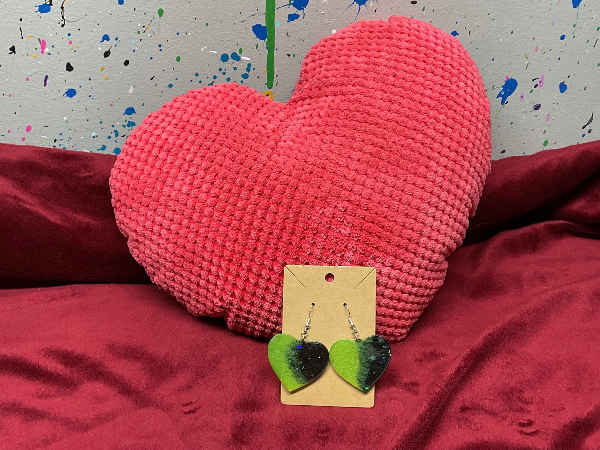 These bold neon green and black glitter heart earrings don't just sparkle, they glow in the dark, demanding attention even when the lights go out. Perfect for those who live loud and shine brighter, these statement dangles turn any outfit into an instant party.