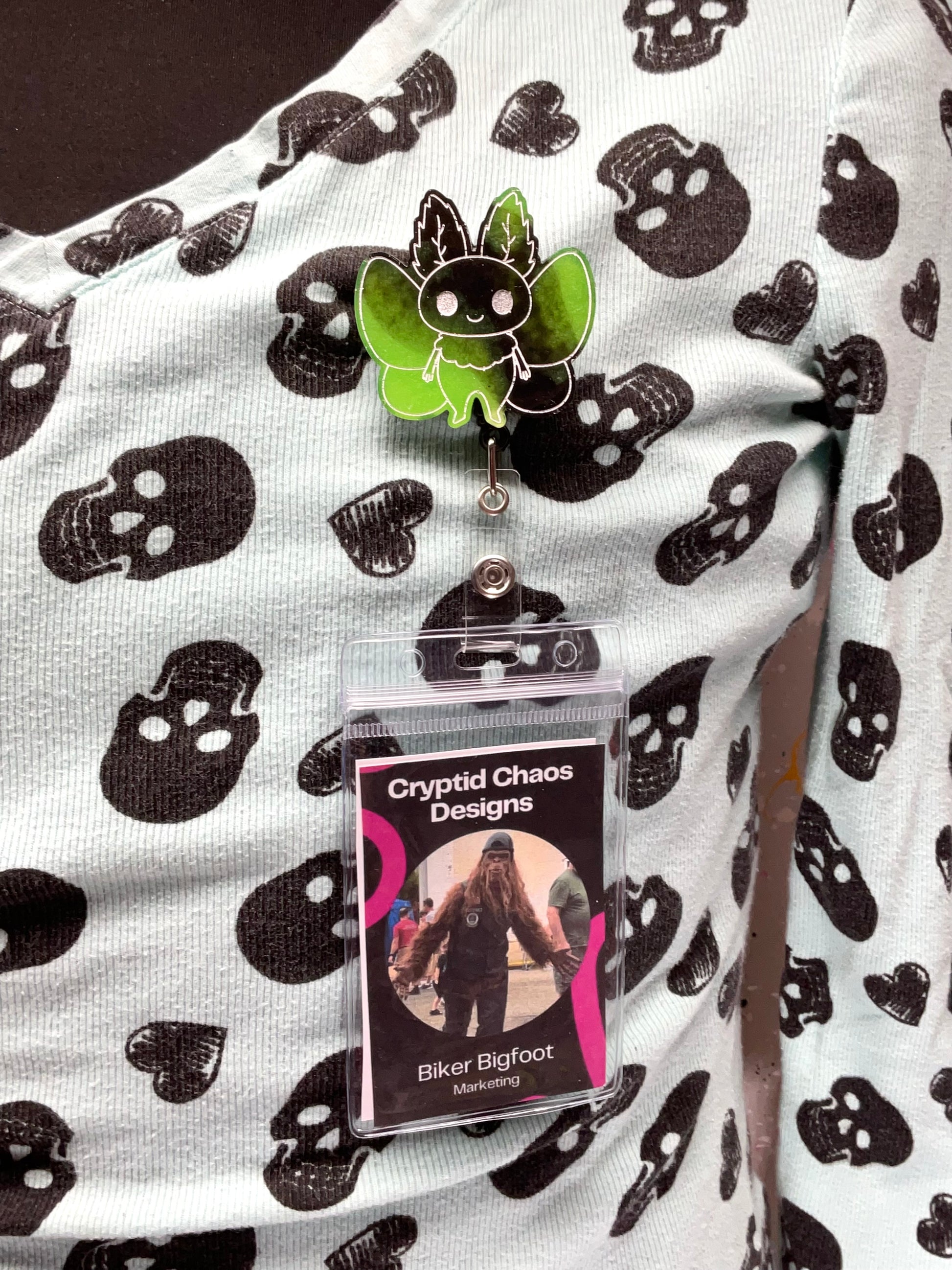 Get ready to electrify your badge game with the Glow In The Dark Mothman Cryptid Badge Reel. This bold little cryptid blends bright green and black hues with a glowing effect that screams supernatural swagger. It's not just a badge holder, it's a statement piece that shines in the darkest corners, turning your everyday work ID into a head turning spectacle.