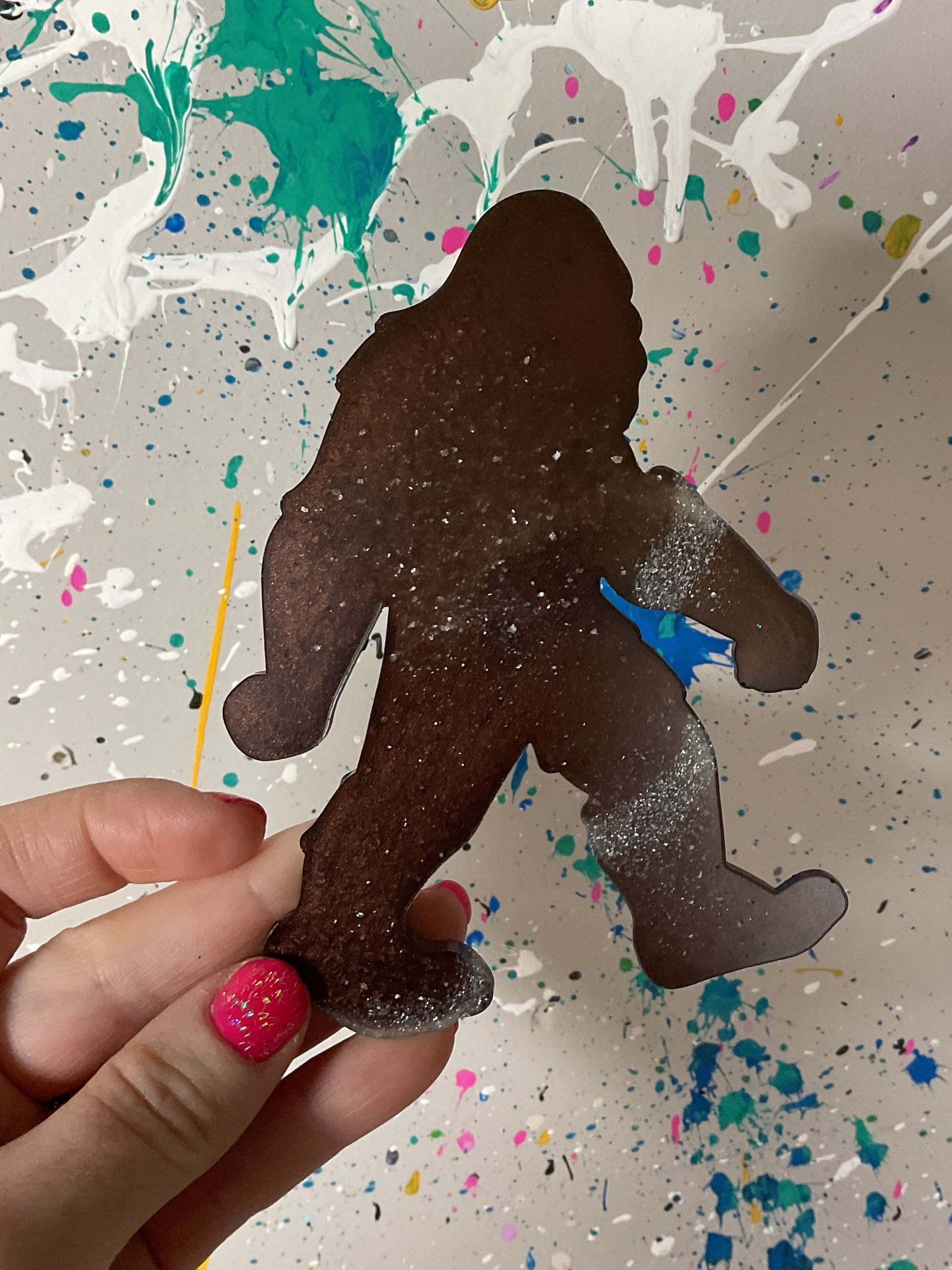 Give your fridge a wild upgrade with this 5 inch tall Bigfoot magnet. Crafted from resin with a rich brown finish and splashes of silver glitter, this cryptid silhouette is ready to stomp some mystery into your kitchen or workspace. It’s not just a magnet, it’s a statement piece for your magnetic surfaces.