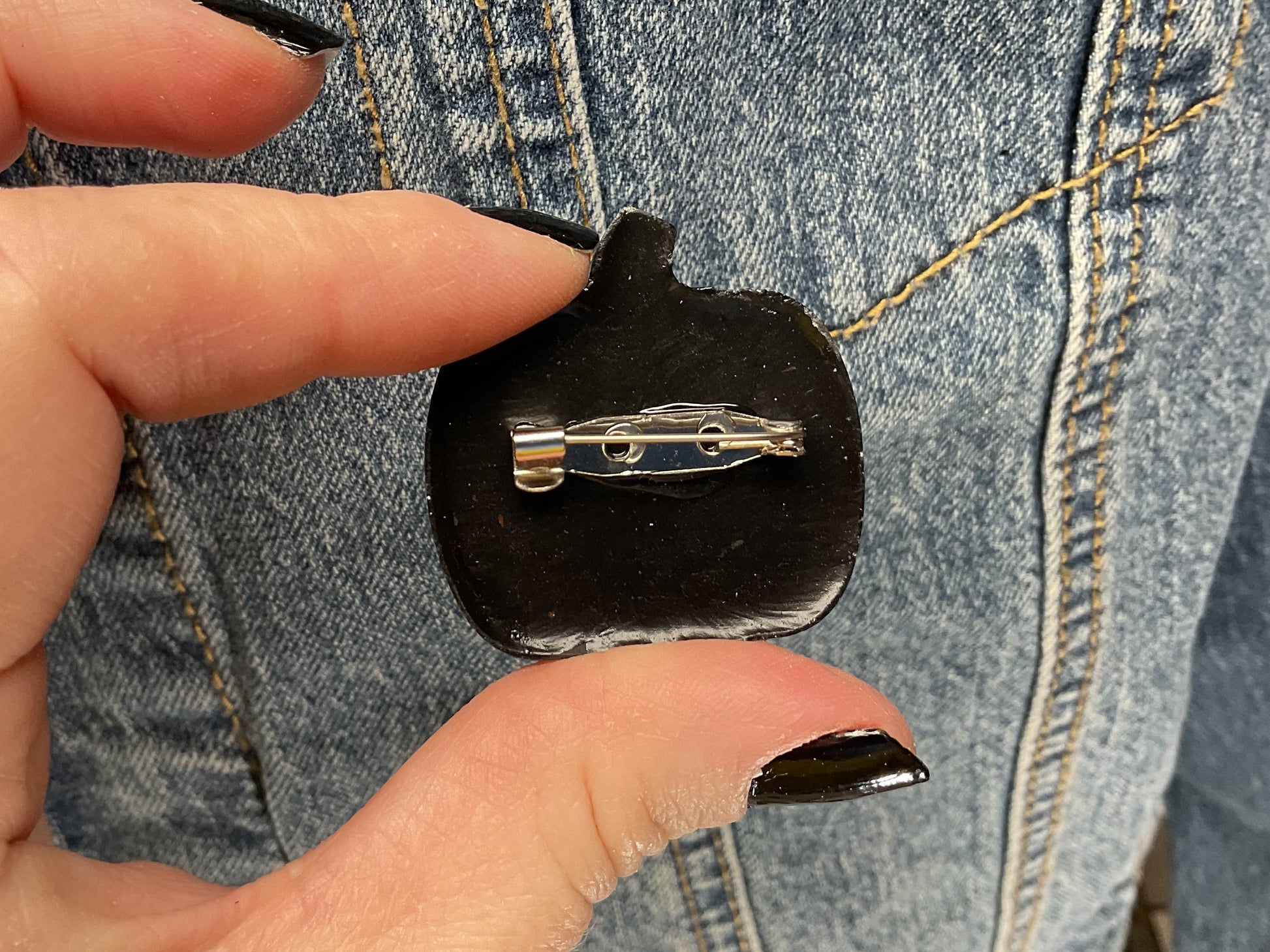 Ready to pumpkin spice up your style? This glittery resin pumpkin pin is your ultimate fall flex, combining spooky vibes with sparkling charm. Perfect for turning your denim jacket into a Halloween statement piece that screams festive and fierce.