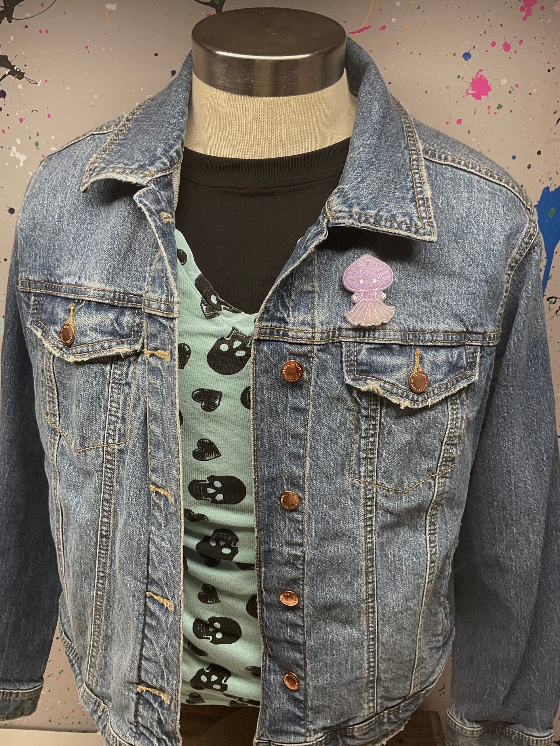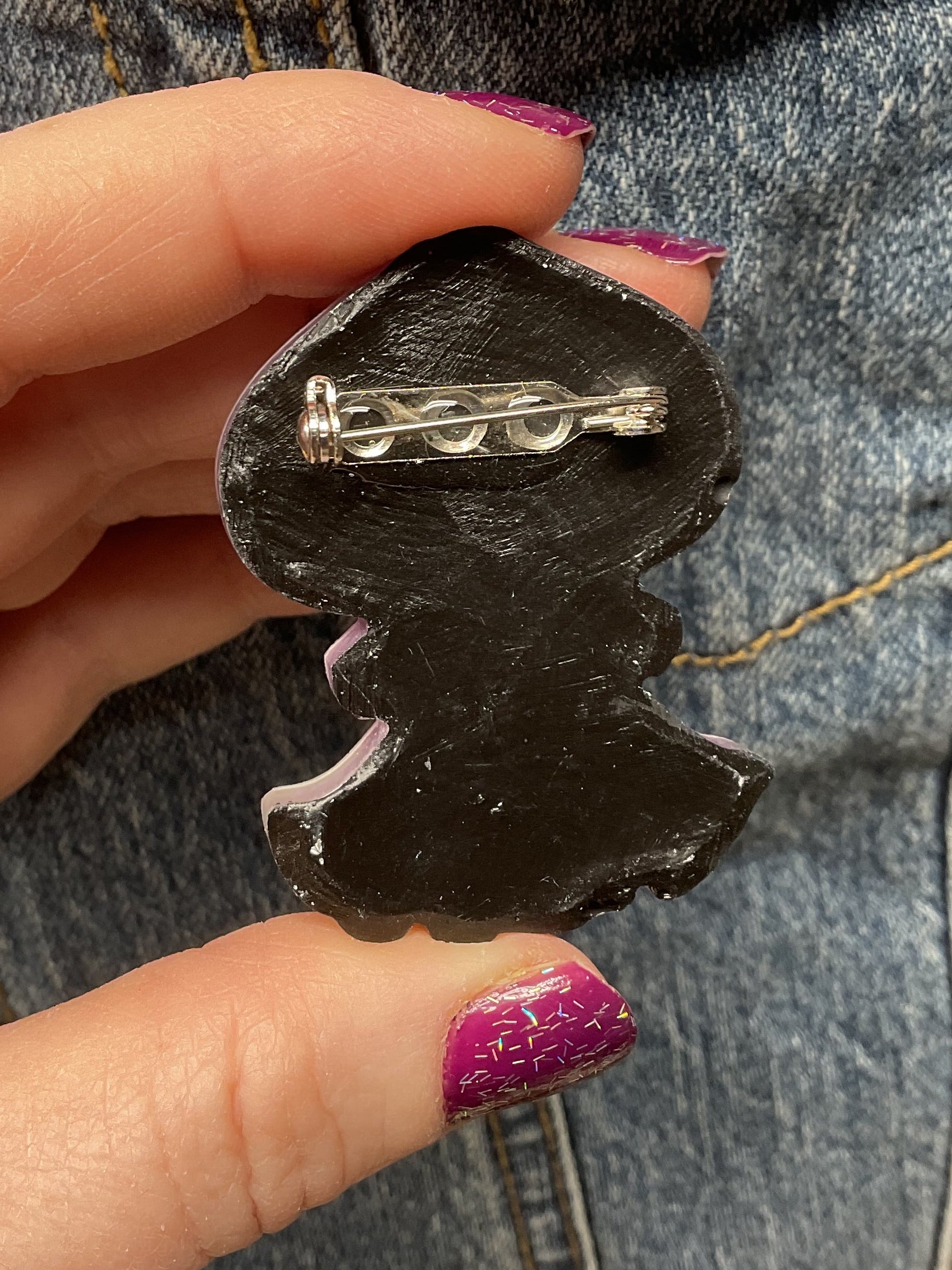 Light up your style with this Purple Glow In The Dark Flatwoods Monster Resin Pin. Hand made from resin, this pin reveals a subtle purple hue by day and bursts into a glowing spectacle by night, making it a must-have for cryptid enthusiasts and night owls alike.