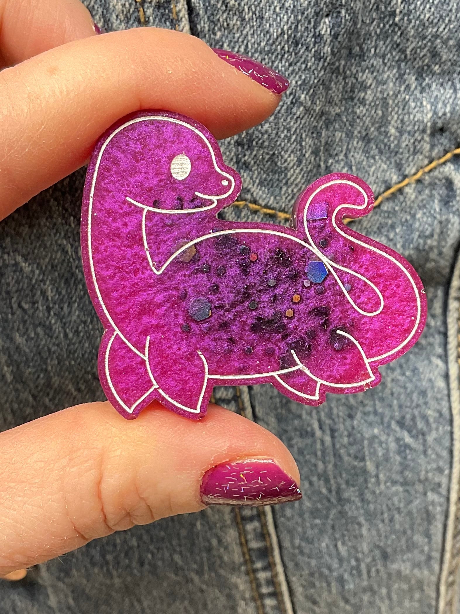 Unleash your inner mystery with this Purple Loch Ness Monster Resin Pin that commands attention wherever it goes. Crafted with vibrant purple resin and dotted with glittery specs, this pin transforms any jacket or bag into a bold statement of mythical charm and playful rebellion.