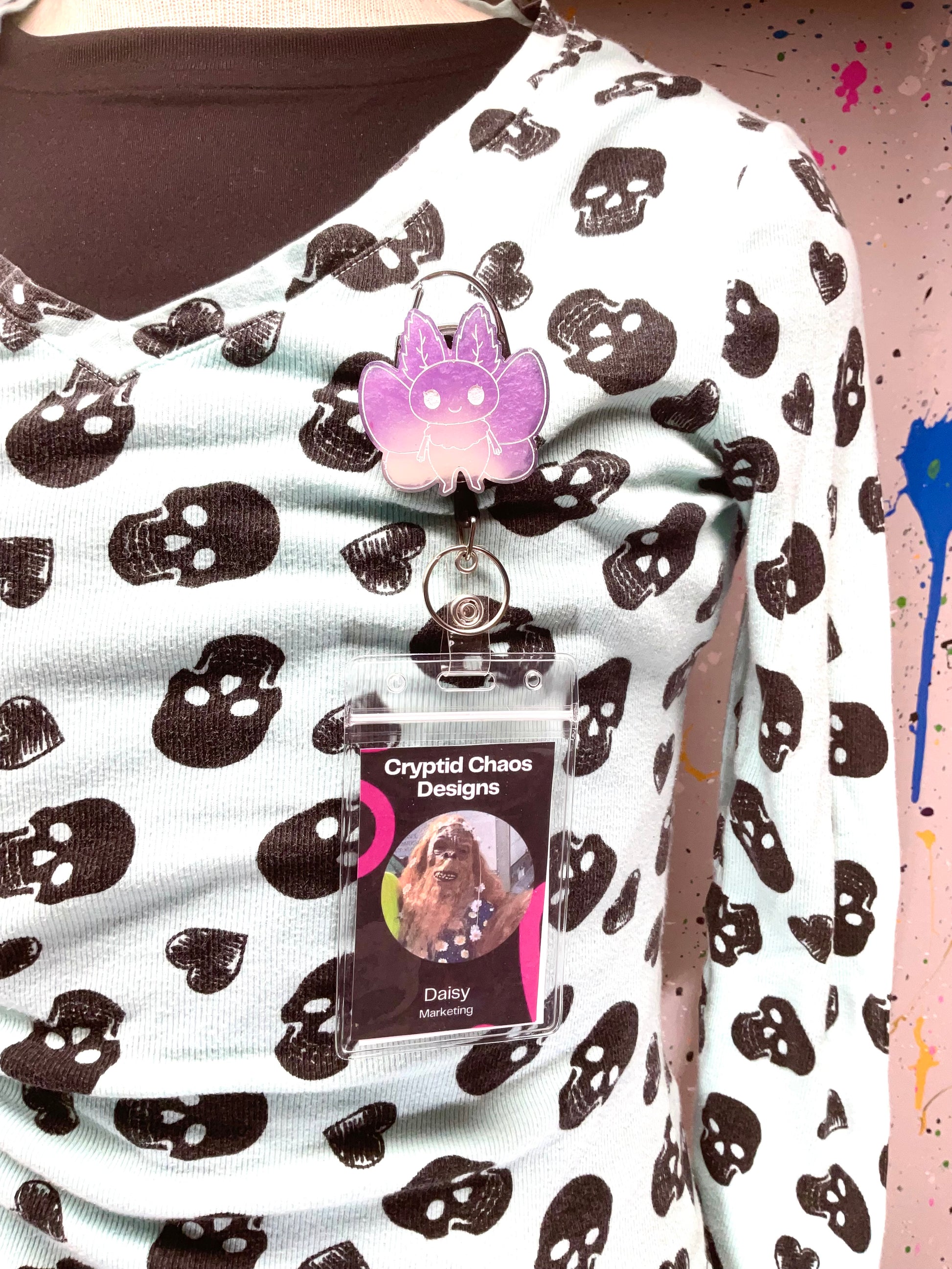 Purple & White Mothman Retractable Badge Reel - Glow in the Dark