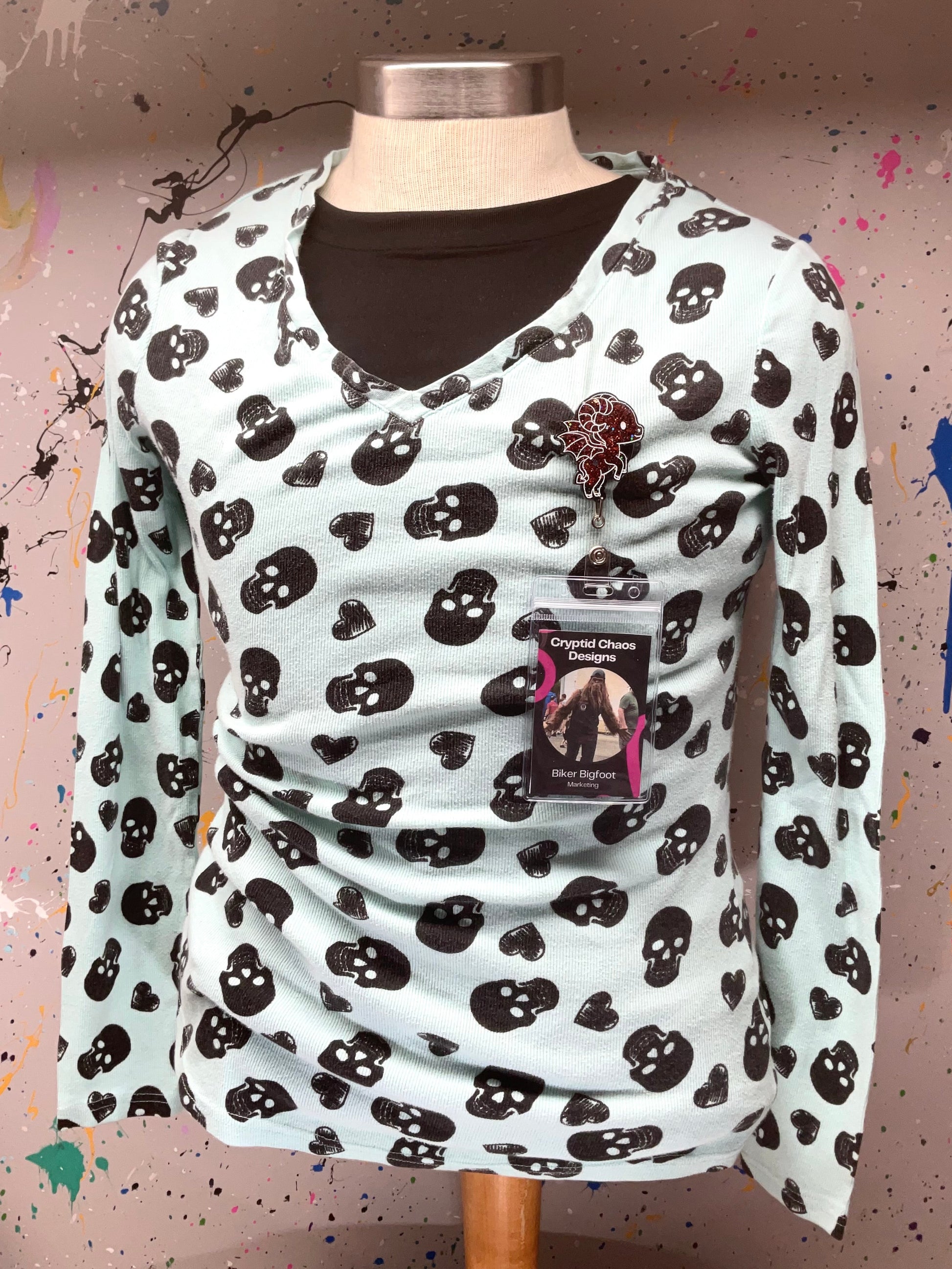 Brace yourself for the Jersey Devil Badge Reel, this little cryptid drips with dark red glitter and horns sharper than your Monday mood. It’s a devilish companion ready to drag your badge into the shadows of corporate hell, sparkling with mischievous charm and a dash of chaos.