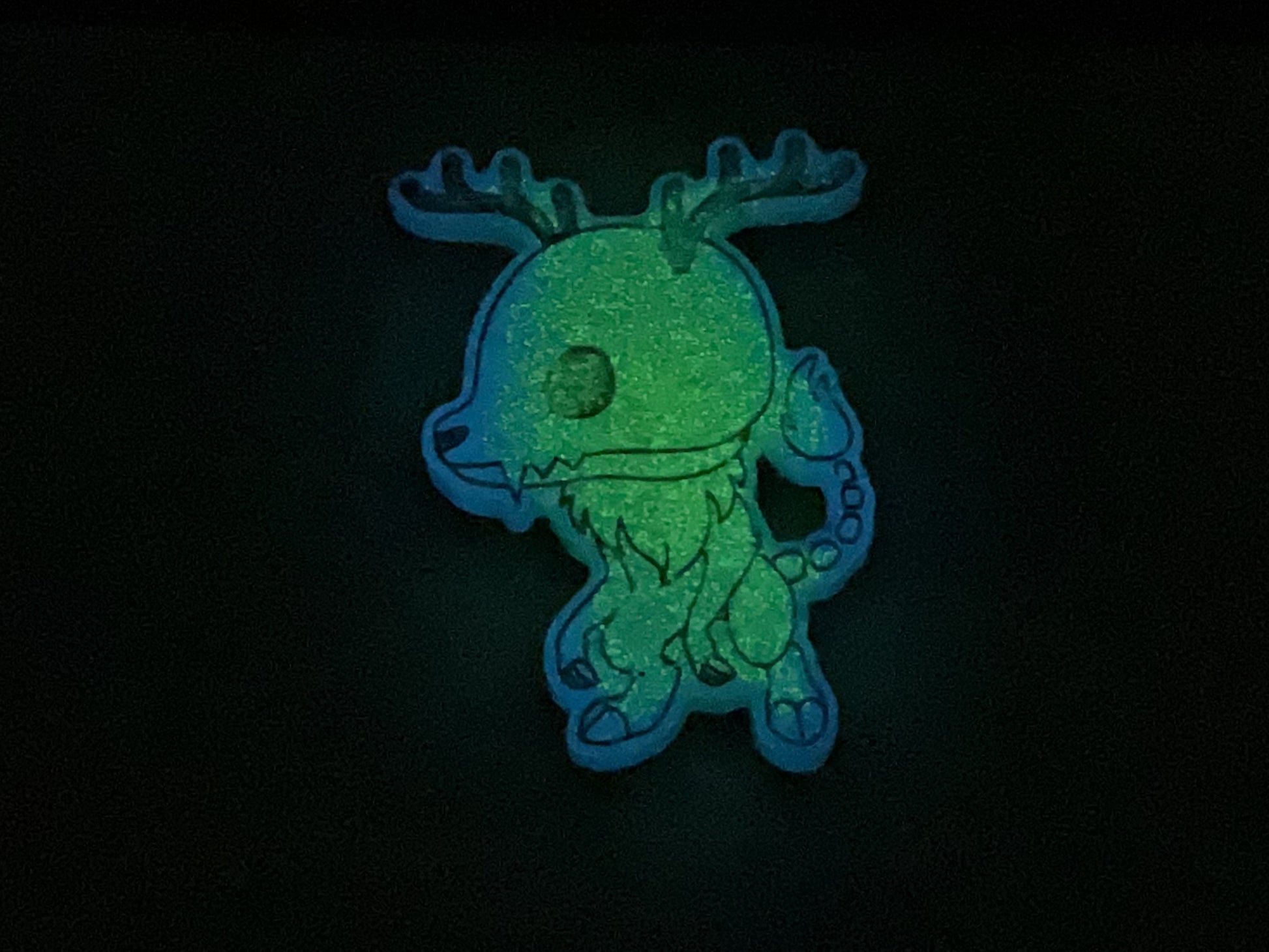 Light your way to midnight snacks with this glow in the dark blue green Wendigo resin magnet, your fridge’s new supernatural friend. This cryptid has cute antlers and a jagged tooth grin, all outlined in bold white that pops against the moody blue green shimmer. When it gets dark it will light the way to your leftovers. It will hold your notes and photos with a magnetic grip you won’t dare challenge because of the strong ceramic disc magnet on the back.