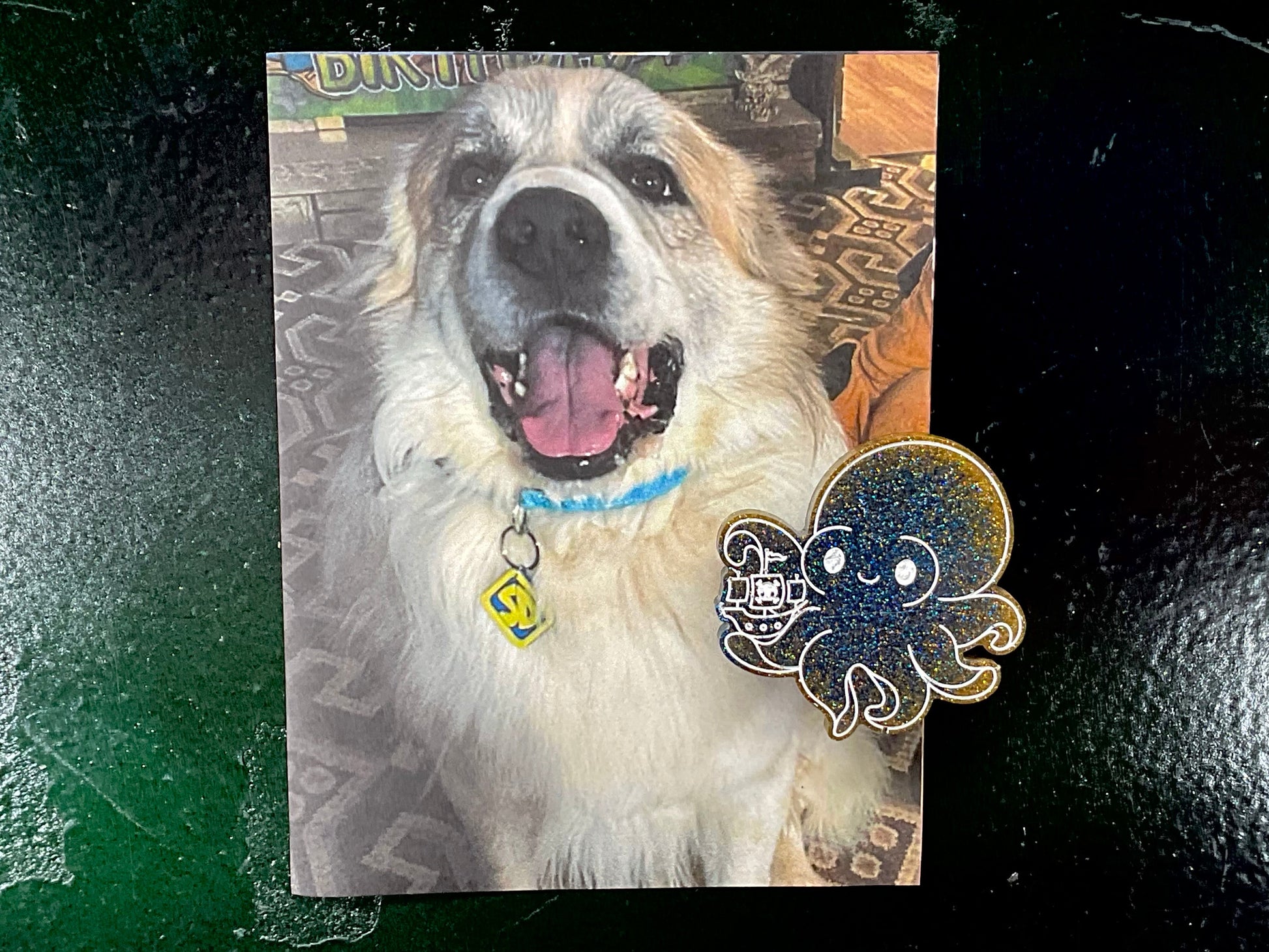 Hoist up your sails for this Kraken Magnet that's glittering like it's been diving through a sea of stars and stolen some cosmic dust. This little cephalopod cryptid flaunts an adorable smile while holding a pirate ship proudly. It’s ready to plunder your fridge with unrelenting cuteness and sparkle.