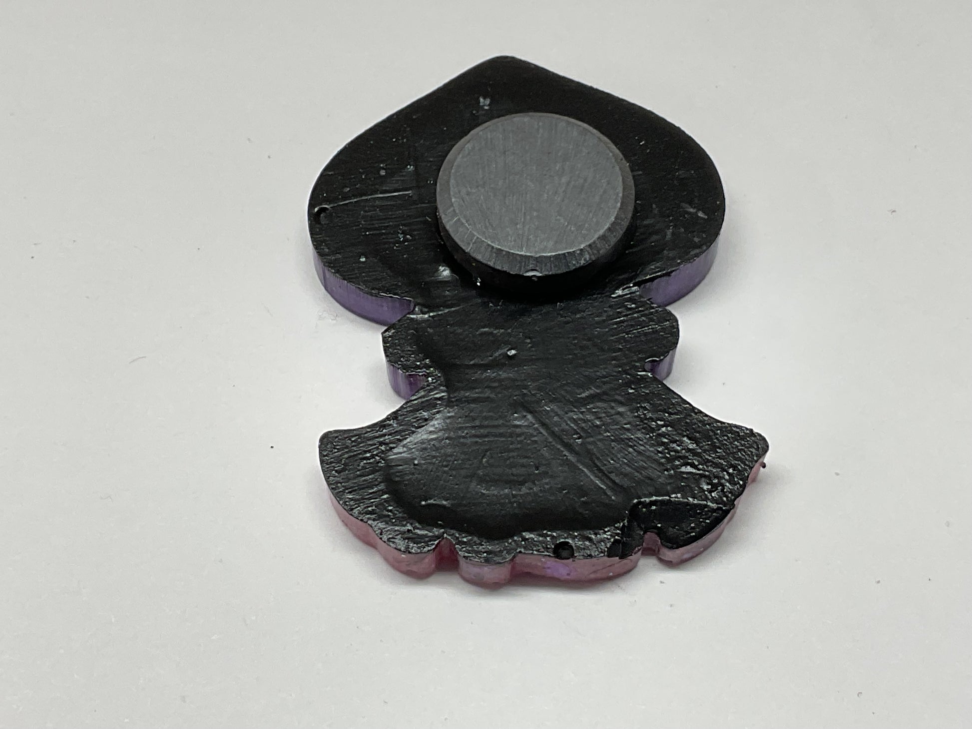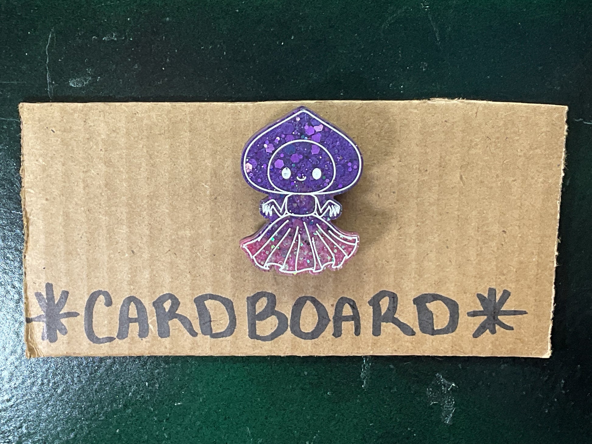 Blast your fridge into a glittery dimension of pure, unfiltered cuteness with this purple and pink Flatwoods Monster magnet. This alien cutie packs a punch with its fierce flared skirt sparkling with chunky purple and green psychedelic glitter, but she’s also stealing hearts with her large eyes and sweet smile. She ready to cling like a boss to your metal surfaces because of her strong ceramic disc magnet on the back.