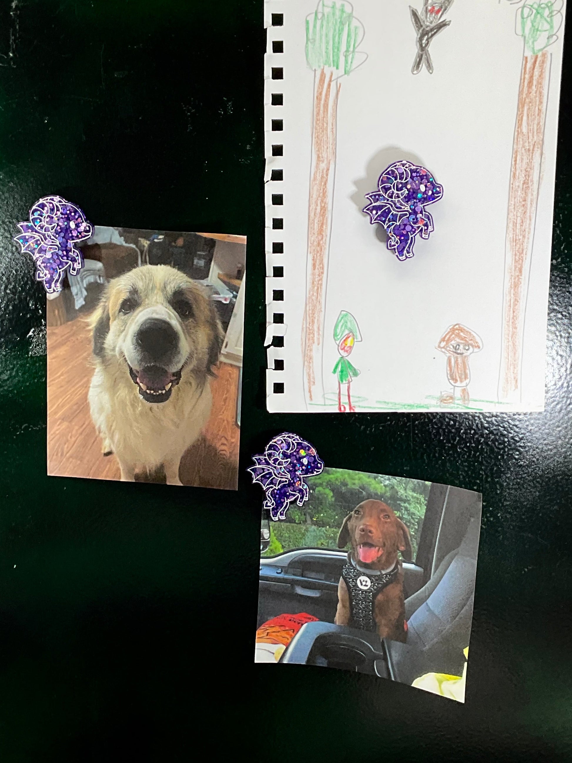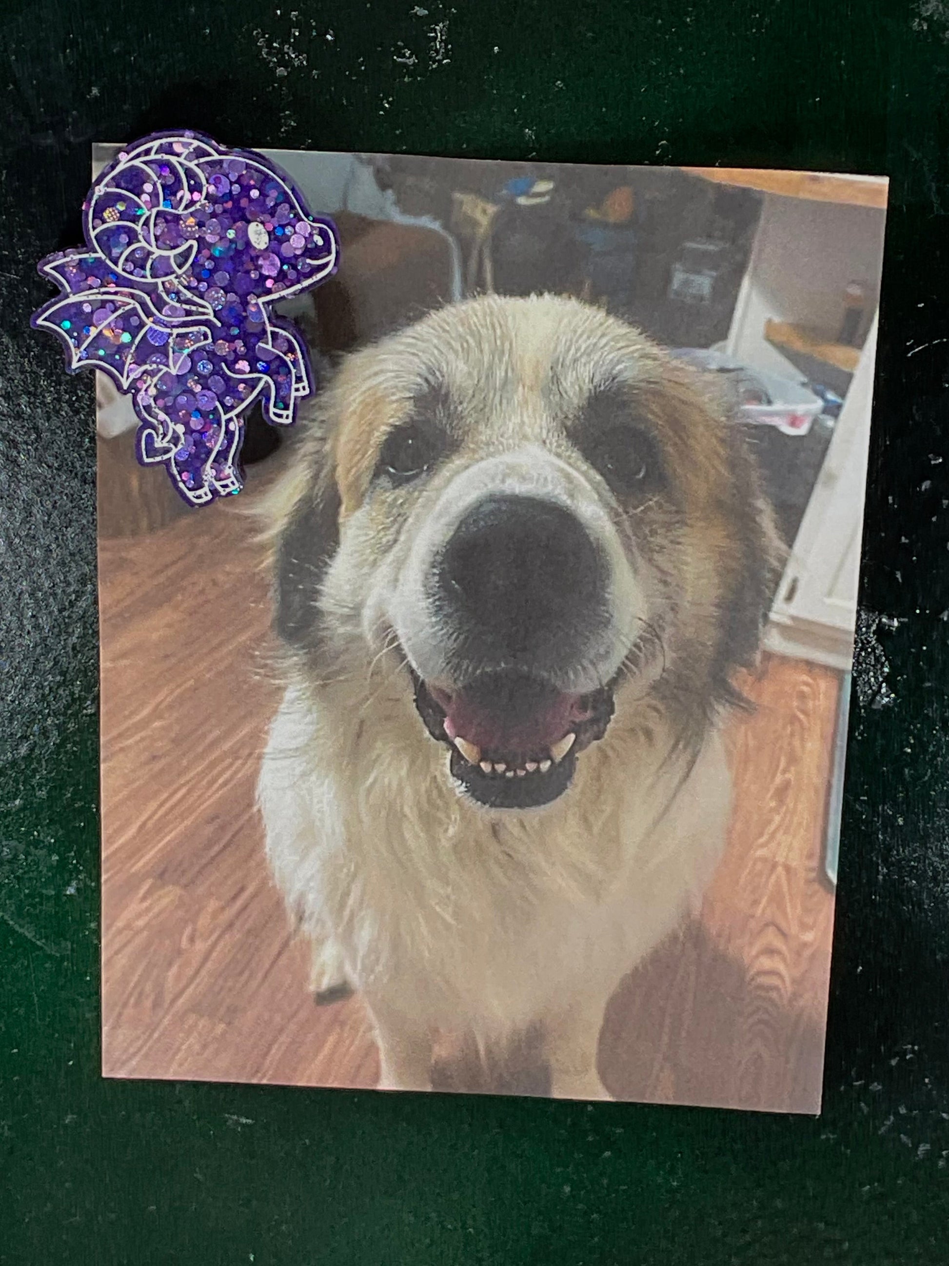 Ready to slap some glittery purple chaos on your fridge? This Jersey Devil magnet laughs in the face of boring magnets. It is packed with epic purple glitter that covers its ram horns, wicked wings, and devilish tail. Stick it on your fridge and watch your kitchen level up to cryptid headquarters.