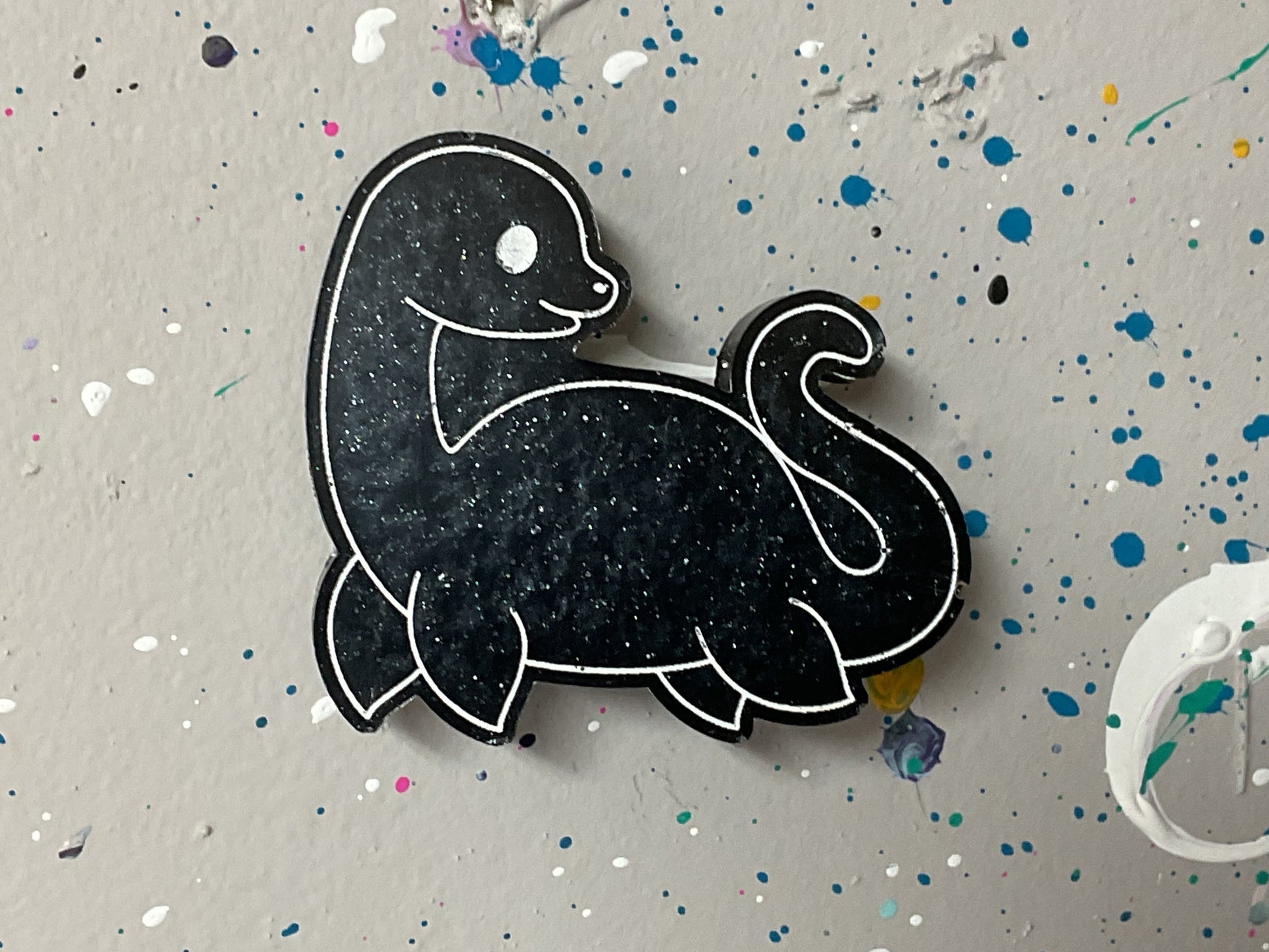 Get ready to slap this cute Loch Ness Monster on your fridge and watch it dominate your notes with it’s mythical might! This beast has silver sparkles that scream "I’m fabulous and I know it!” It will hold your grocery lists hostage with its strong ceramic disc magnet. Forget boring, this magnet is here to bring monster charm to your kitchen.
