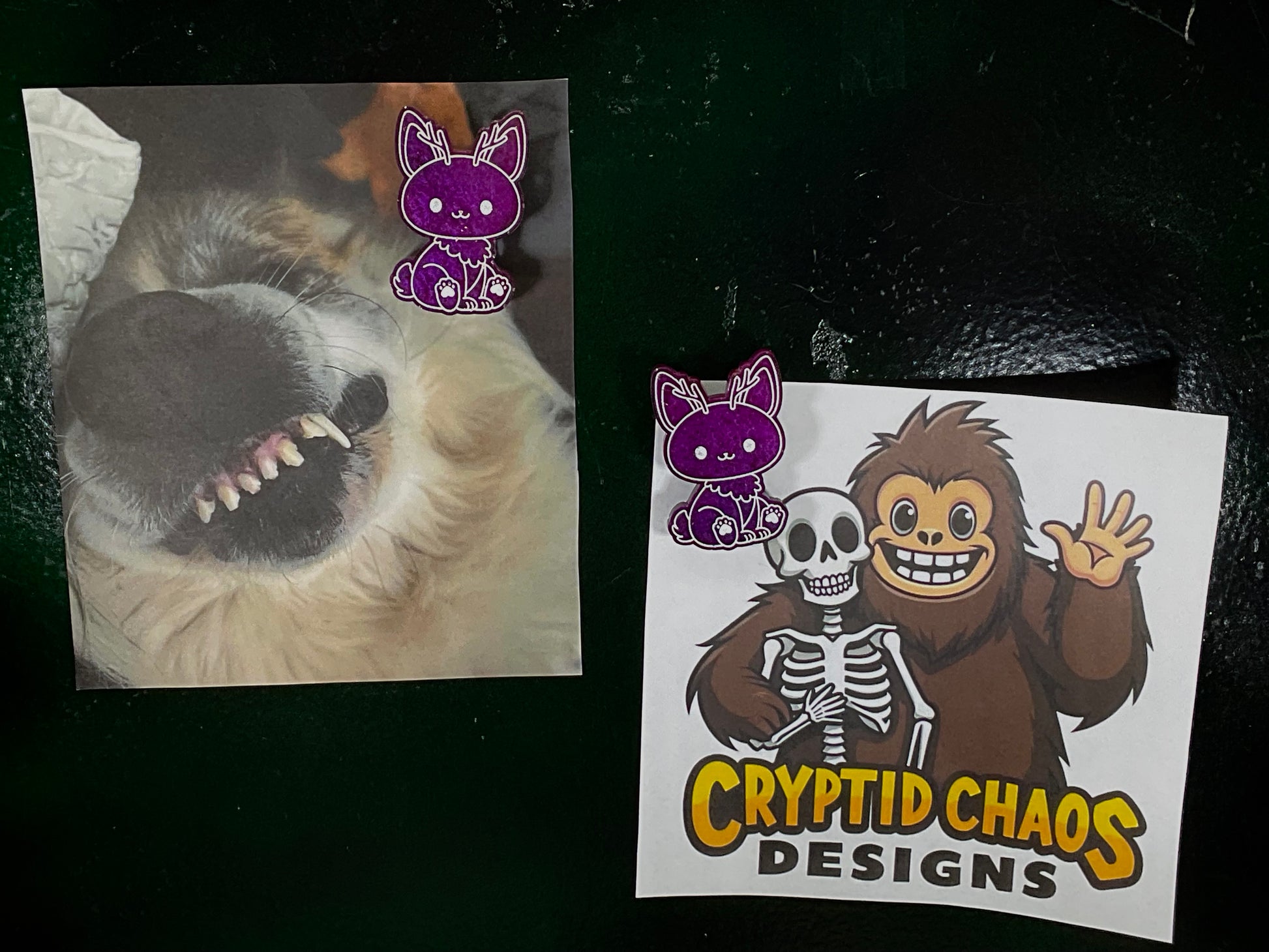 Say hello to the purple Jackalope magnet, your new favorite magnet with a cute twist! This purple cryptid with its tiny antlers and innocent face is here to dominate your metal surfaces with charm and adorableness. Perfect for chaos lovers want their fridge to scream "I own this" with a cute yet unnervingly whimsy vibe.