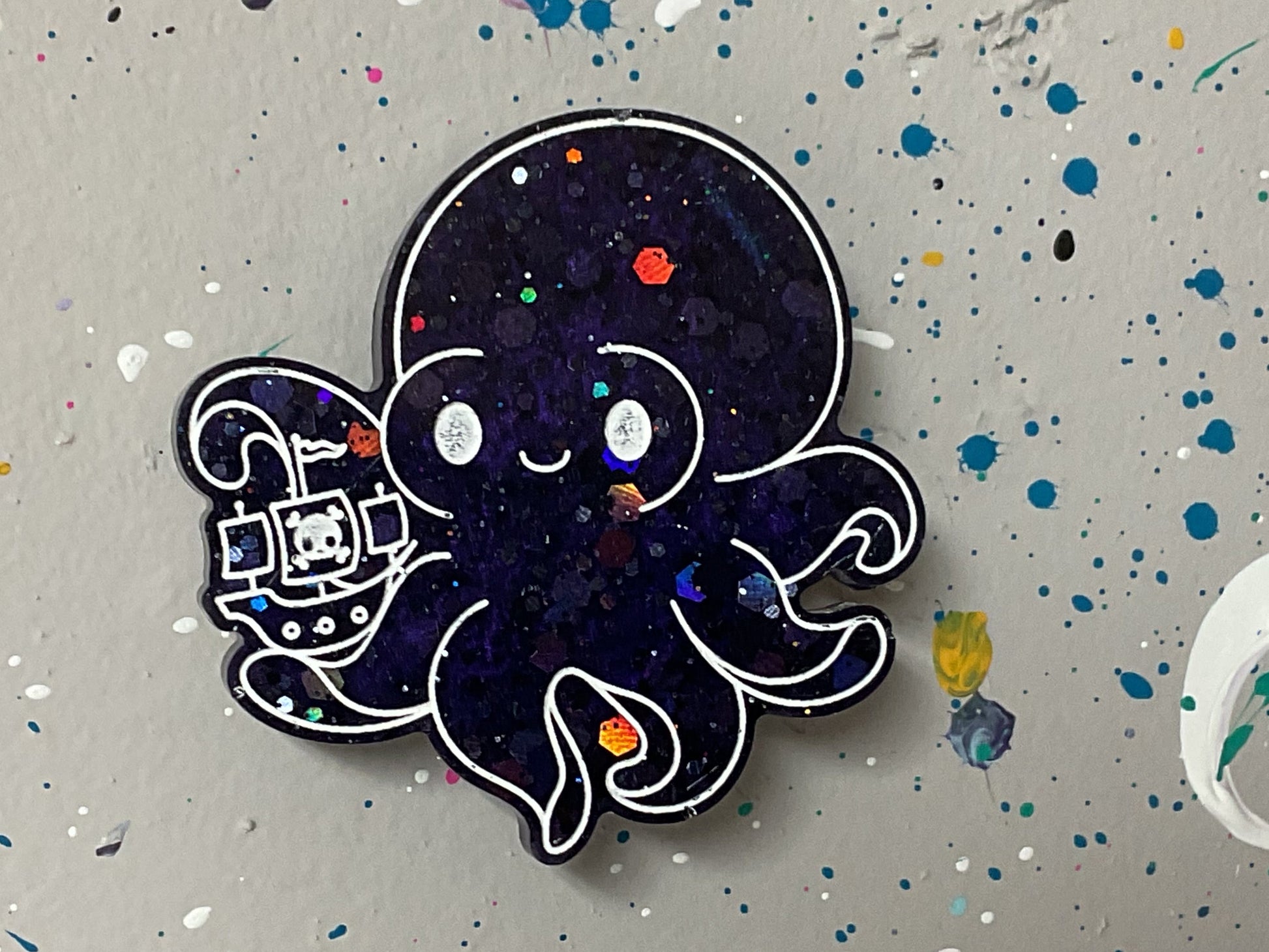 Small Purple Kraken Magnet With Holographic Glitter