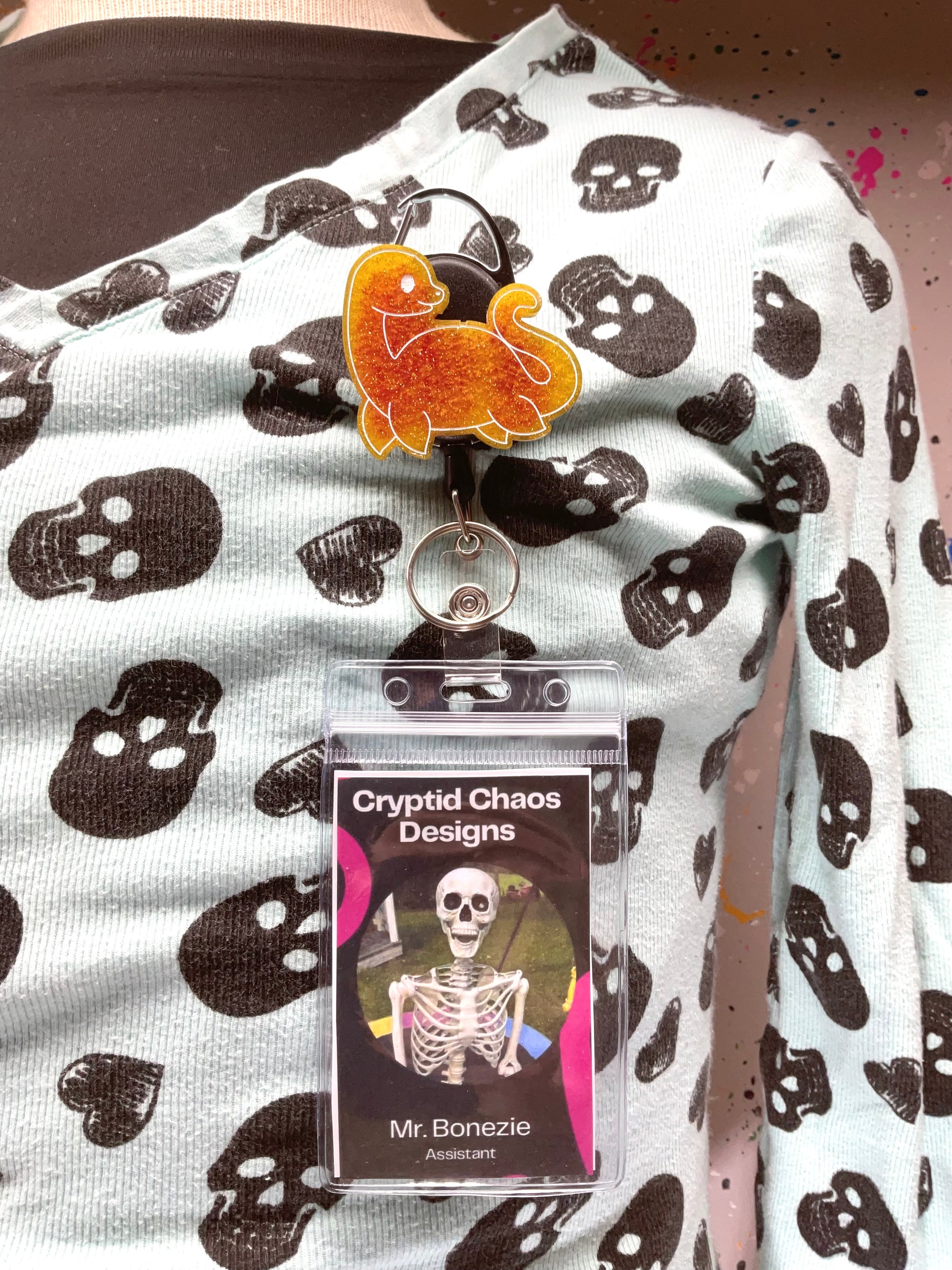 Get ready to clip on some fierce vIves with this Yellow Red Loch Ness Monster Badge Reel. It’s not just a badge holder, it’s a statement piece packed with shimmering glitter that catches the light and eyes alike. Designed for those who dare to stand out, this badge reel combines fun and function with a retractable cord, pocket and belt clip and a sturdy key ring attachment.